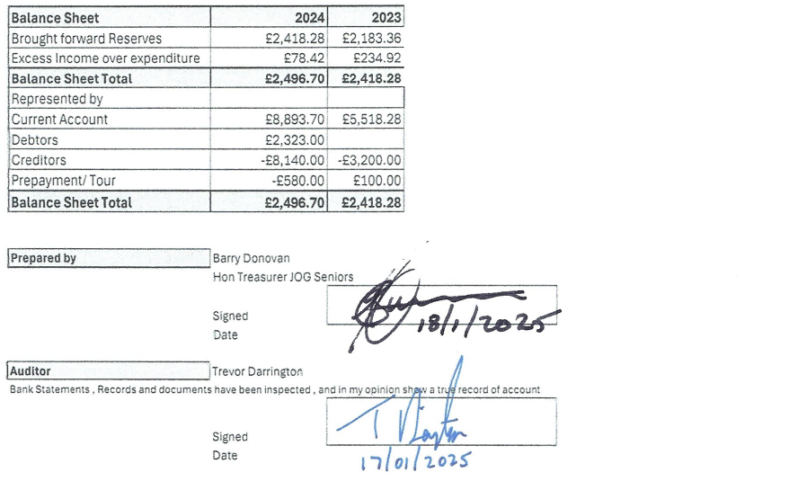At the beginning of the 2024 year the committee set a Budget for the year. A comparison